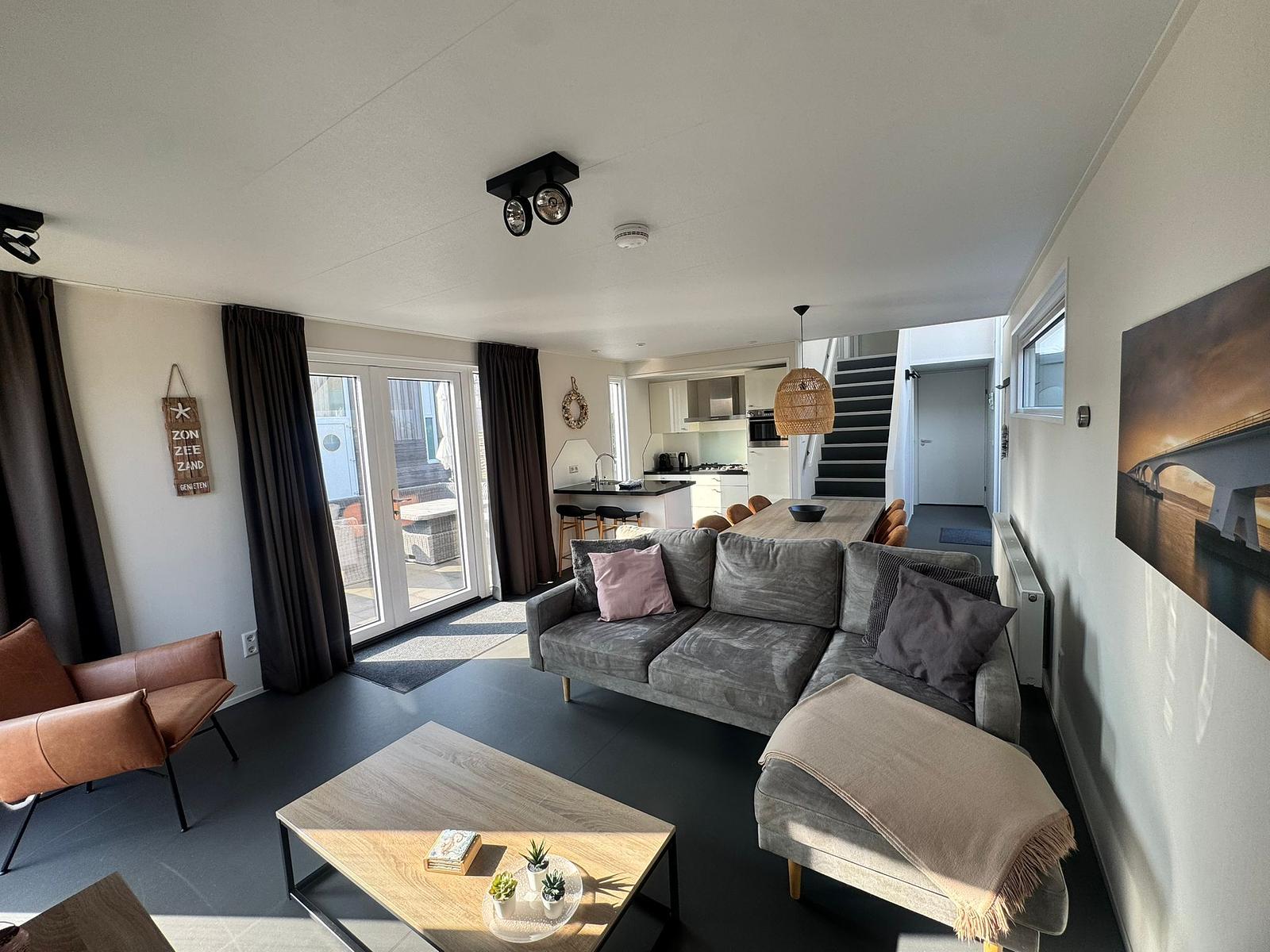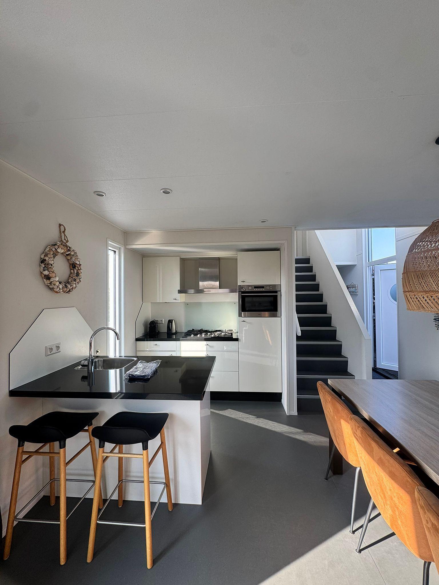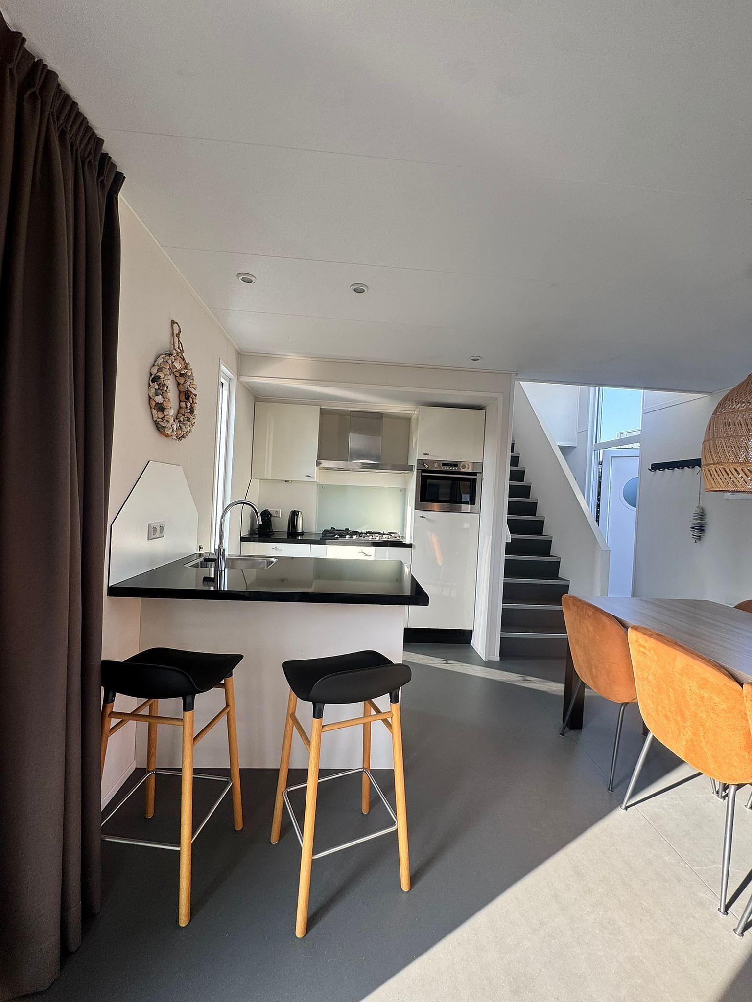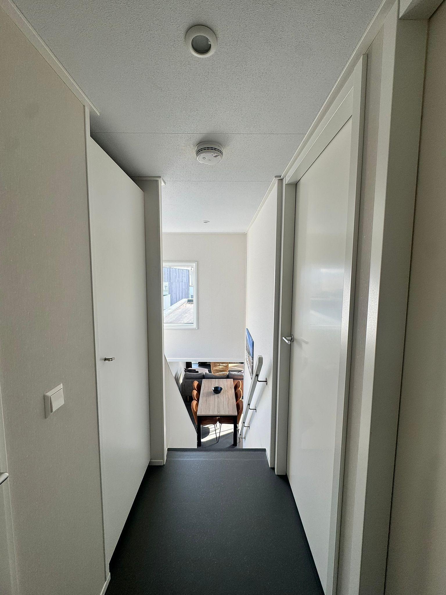 Die Calipso-Variante bietet im ersten Stock Platz für ein zusätzliches Schlafzimmer und ein Standard-Duschbad mit separater Toilette. Im Erdgeschoss schläft man auf der kühlen Nordseite, während sich das Wohnzimmer im Jacques Calipso auf der Stirnseite befindet.